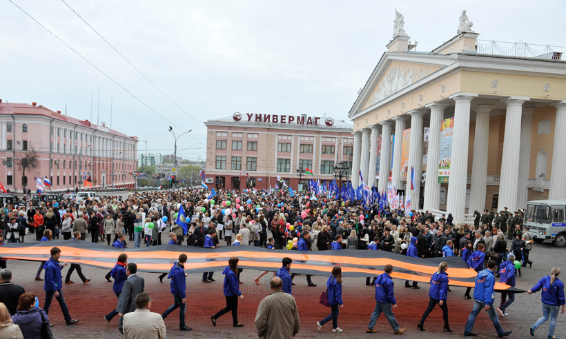 По завершении митинга профсоюзов его участники присоединились к шествию «Геогриевская ленточка», прошедшем от Театральной площади к площади Партизан, а затем приняли участие в торжественном открытии «Вахты Памяти −2013».