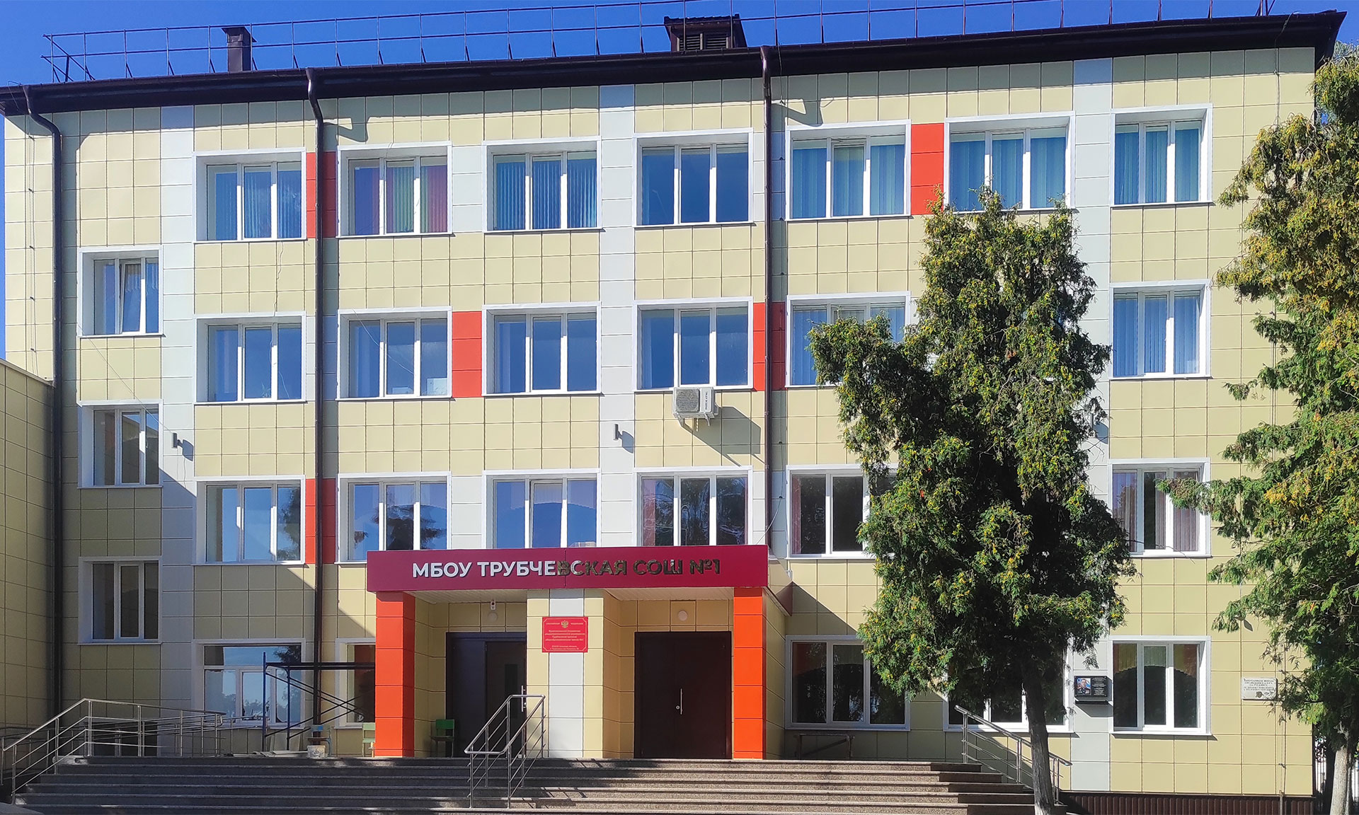 В Трубчевской школе № 1 сделан капитальный ремонт: новые инженерные системы, освещение, кровля, полы и потолки, двери и окна, отремонтированы лестницы, новое покрытие в спортзале, мебель и оборудование в столовой.