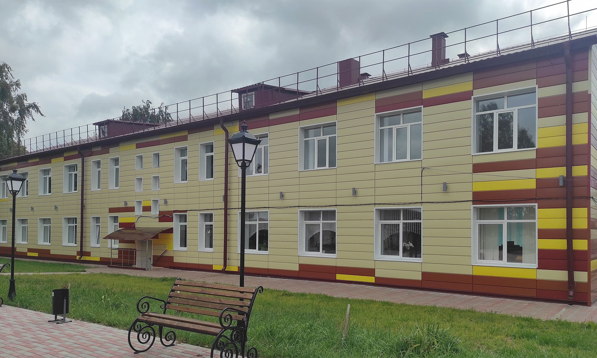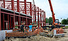 Сейчас ведутся работы по устройству металлического каркаса здания, установке колонн, панелей перекрытия, отоплению — котельная уже есть. Закуплен весь необходимый материал — металл, сэндвич-панели, монтаж начнется со следующей недели. Пока позволяет погода, строители приступят к благоустройству территории.