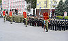 Торжественным маршем прошли кадеты Клинцовской кадетской школы «Юный спасатель» имени героя Советского Союза С. И. Постевого, коробки юнармейцев, сводный военный духовой оркестр Брянской области.