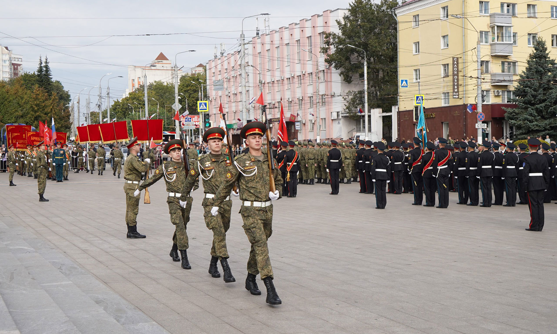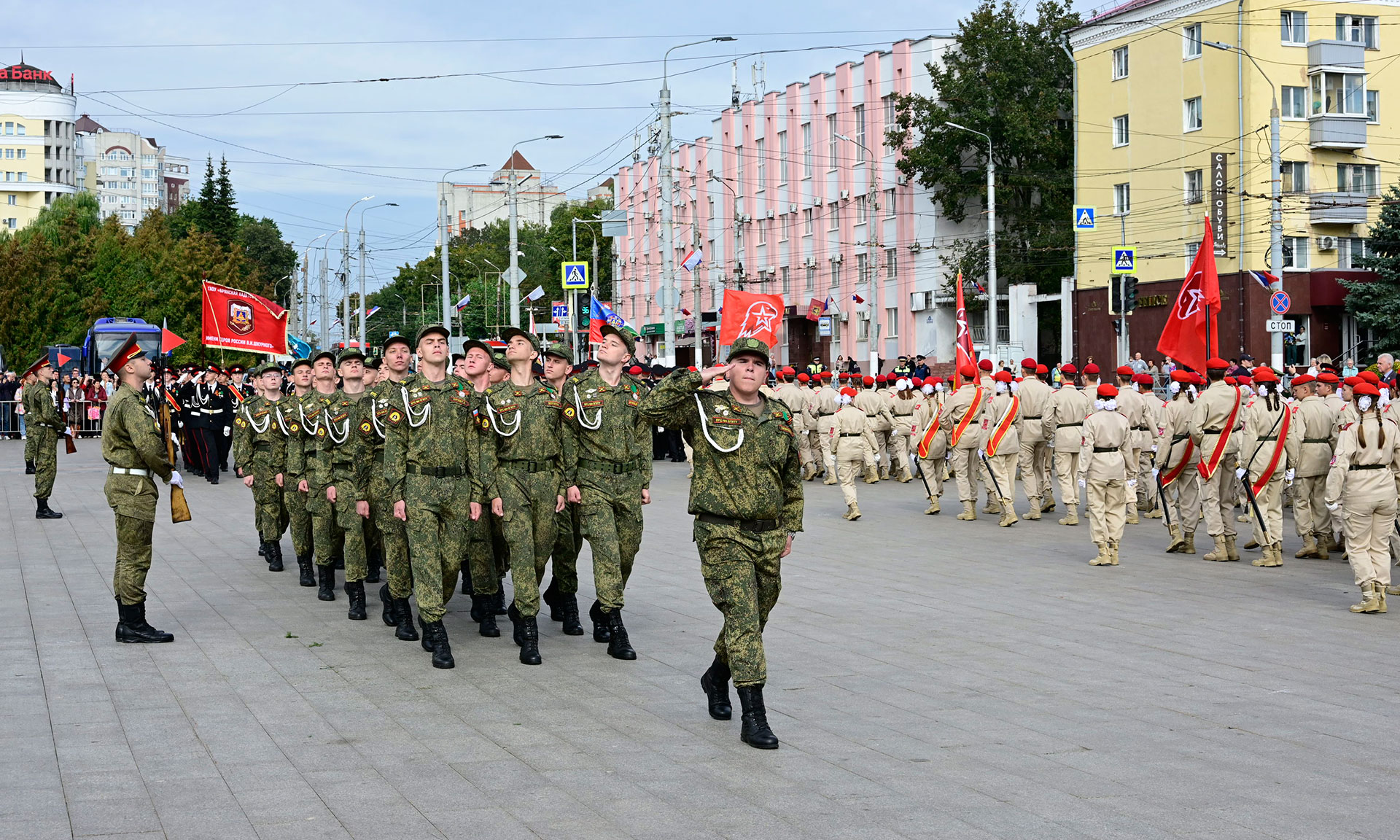 В парадном строю — курсанты военного учебного центра, парадный расчет Брянской кадетской школы имени Героя России В. И. Шкурного, Дятьковской кадетской школы имени Героя Советского Союза И. А. Кашина, казаки-кадеты лучшего казачьего кадетского корпуса Российской Федерации по итогам Всероссийского смотра-конкурса 2025 года. Уже в октябре в Кремле кадеты получат переходящее знамя Президента России!