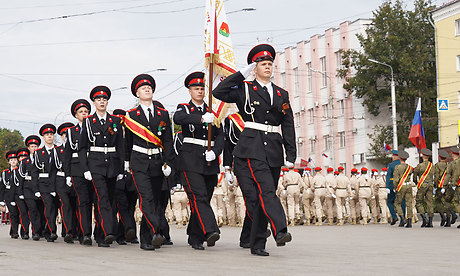 Состоялся торжественный марш в честь 82-й годовщины освобождения Брянщины от немецко-фашистских захватчиков. Открыла марш знаменная группа военного учебного центра при Брянском государственном инженерно-технологическом университете.