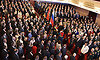 В зал были внесены Конституция Российской Федерации и Устав Брянской области, а также символ Губернаторской власти Брянской области — Знак Губернатора Брянской области.
