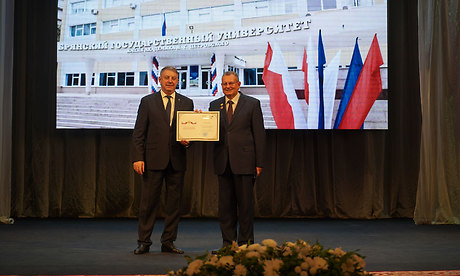 Уверен, что и в дальнейшем, поддерживая традиции, заложенные предыдущими поколениями преподавателей, сохраняя и приумножая накопленный потенциал университета, постоянно находясь в поиске, вы будете вносить значительный вклад в развитие Брянской области и процветание России!