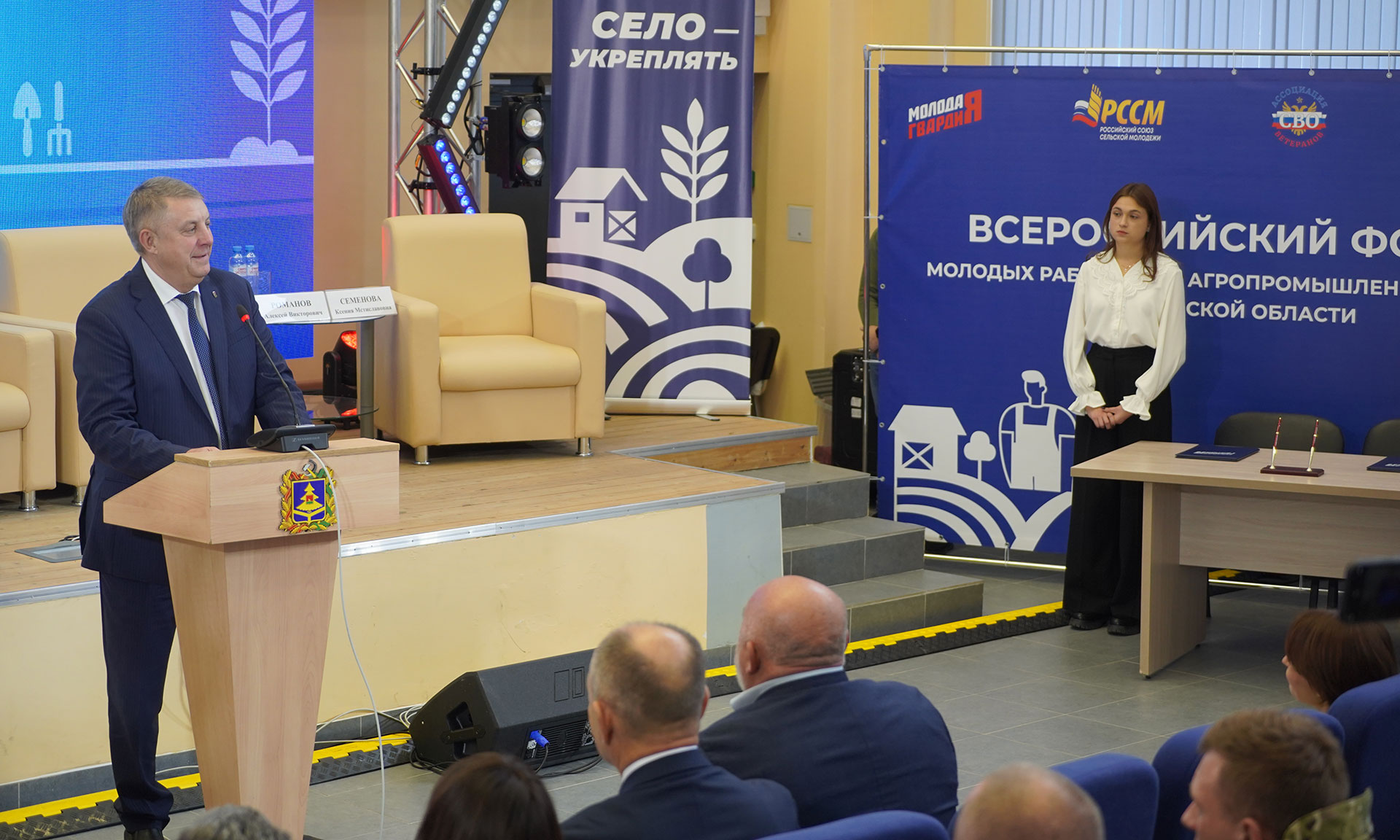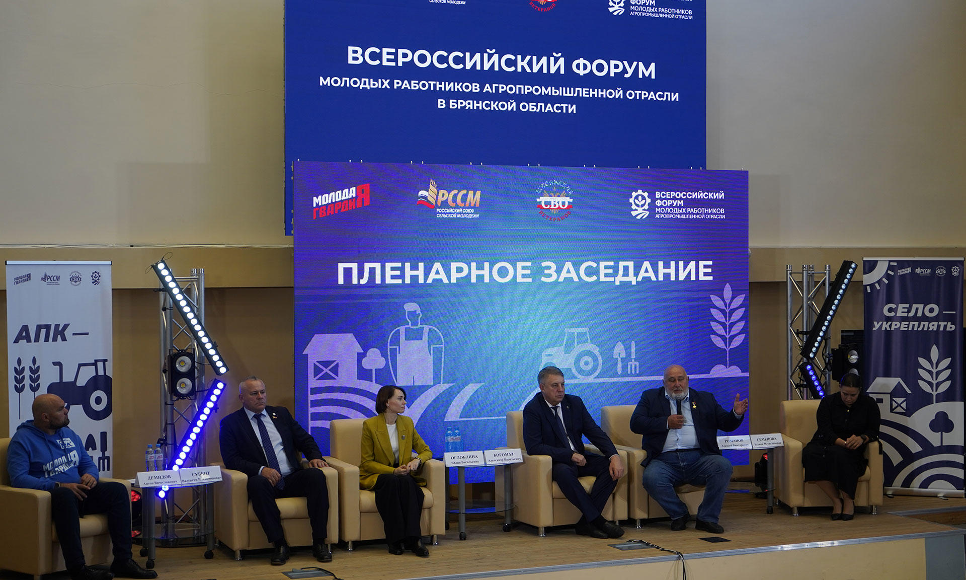 В торжественном открытии форума приняли участие Губернатор Брянской области Александр Богомаз, заместитель председателя Комитета Государственной Думы по аграрным вопросам, лидер Российского союза сельской молодежи Юлия Оглоблина, Герой России, полковник, референт Управления общественных проектов Администрации Президента РФ Алексей Романов, Председатель Всероссийской общественной организации «Молодая гвардия Единой России», член Президиума Генерального Совета партии «Единая Россия» Антон Демидов, председатель Брянской областной Думы Валентин Суббот, сенаторы РФ Василий Попадайло и Вадим Деньгин, депутат Государственной Думы Николай Щеглов, участник СВО, кавалер трех орденов Мужества, участник президентской кадровой программы «Время героев», подполковник Евгений Вылцан.
