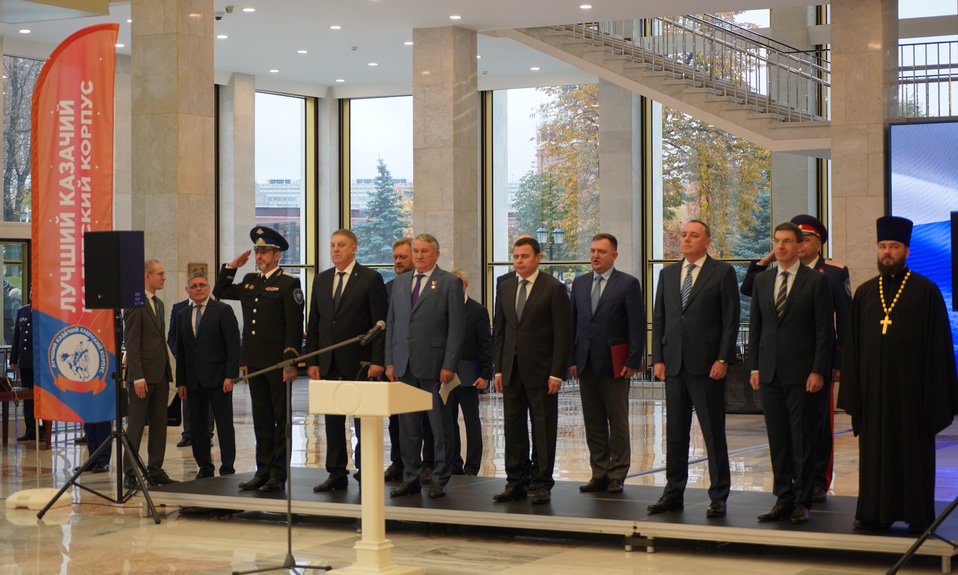 Участников церемонии поприветствовал заместитель Руководителя Аппарата Правительства РФ, заместитель председателя Совета при Президенте РФ по делам казачества Денис Молчанов: