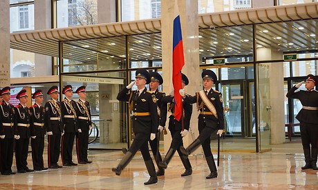 Мы находимся в особенном месте, на территории Московского Кремля. Овеянный ратной славой, этот уникальный архитектурный памятник напоминает о нашей великой истории, многих поколениях наших предшественников. И важно, что сегодня церемония передачи знамени Президента Российской Федерации проходит именно здесь.