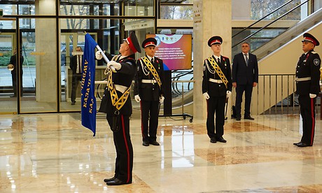Уважаемые коллеги, победа в смотре-конкурсе и получение переходящего знамени Президента накладывает на вас особую ответственность и в будущем быть лучшими, достойными гражданами нашей великой страны. Ещё раз поздравляю вас и желаю новых успехов!
