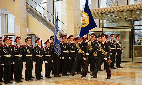 От имени Правительства Российской Федерации приветствую здесь, в святых стенах Московского Кремля, Стародубский, казачий кадетский корпус, лучший казачий кадетский корпус России!