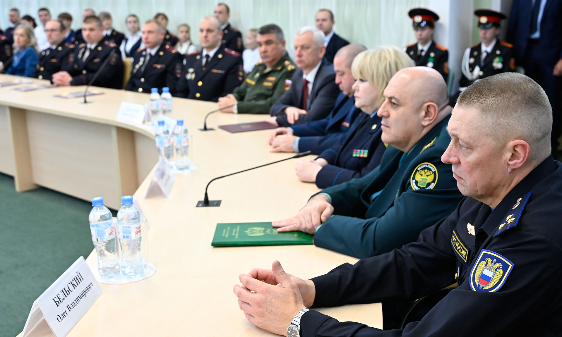 Как сказал наш национальный лидер, Президент страны Владимир Владимирович Путин, «в условиях навязанного нам вооружённого конфликта, проведения специальной военной операции вся правоохранительная сфера и ключевое её звено — МВД — всю свою деятельность должны строить исходя из этих угроз. Порядок, дисциплина, строгое соблюдение закона должны быть абсолютно обеспечены и гарантированы. Вы все люди в погонах, так же как и наши бойцы, которые выполняют свой долг перед Родиной на линии боевого соприкосновения, но у вас свои задачи. И всё, что мы делаем и на линии фронта, и здесь должно быть подчинено одной единой логике и одной цели — победе, должно быть подчинено достижению поставленных перед нами задач, обеспечению безопасности государства и будущего России».