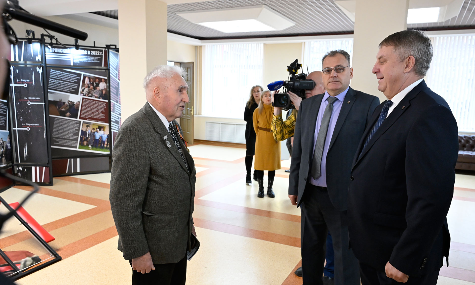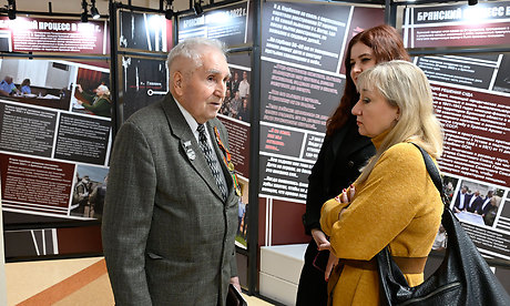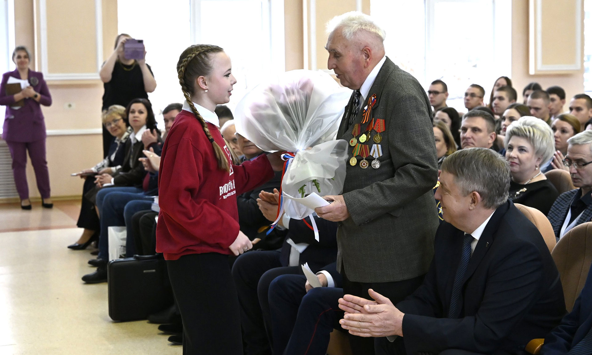 Перед началом работы конференции, в знак памяти и благодарности за мужество и стойкость представители молодёжи Брянской области вручили цветы малолетному узнику концлагеря «Дулаг-142» в годы Великой Отечественной войны Александру Сергеевичу Линеву.