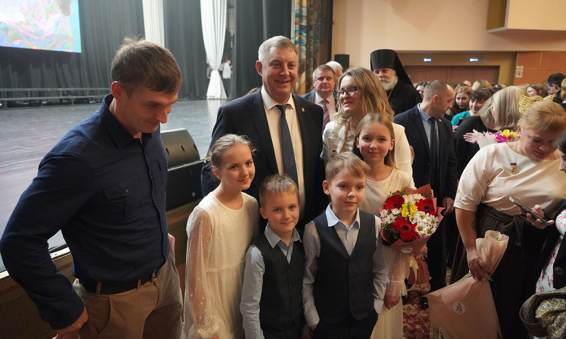 Губернатор вручил Почётный знак Брянской области «Материнская слава» мамам, которые достойно воспитали и воспитывают пять и более детей. В числе награжденных: