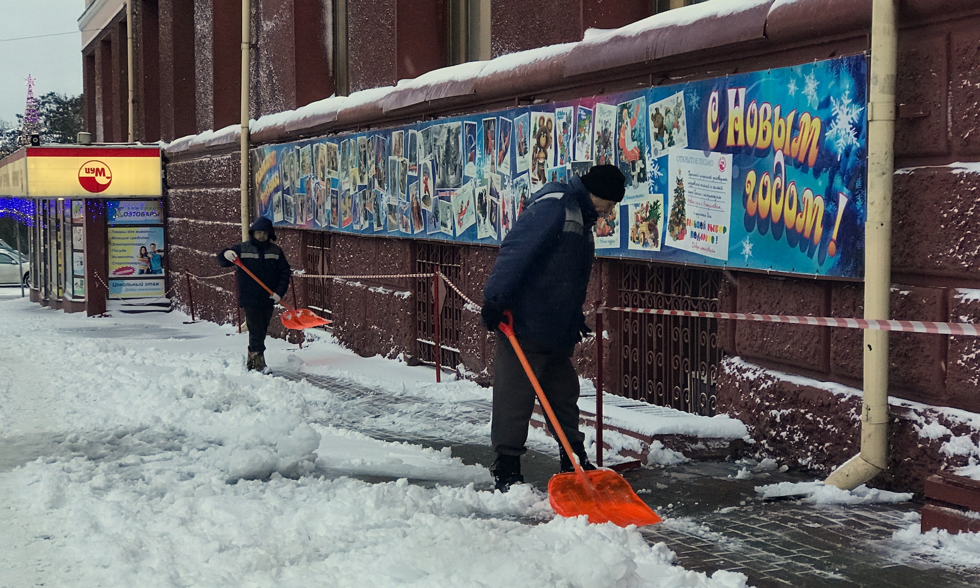 Работники коммунальных служб районов области также приступили к уборке снега с дорог, площадей, тротуаров и обсыпке их песко-соляной смесью. В первую очередь расчищены подъезды к социально значимым учреждениям: больницам, школам, детским садам. К коммунальщикам присоединились дворники и уборщики учреждений и организаций: они убирают снег у входов в магазины, кафе и другие здания и сооружения.