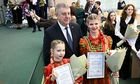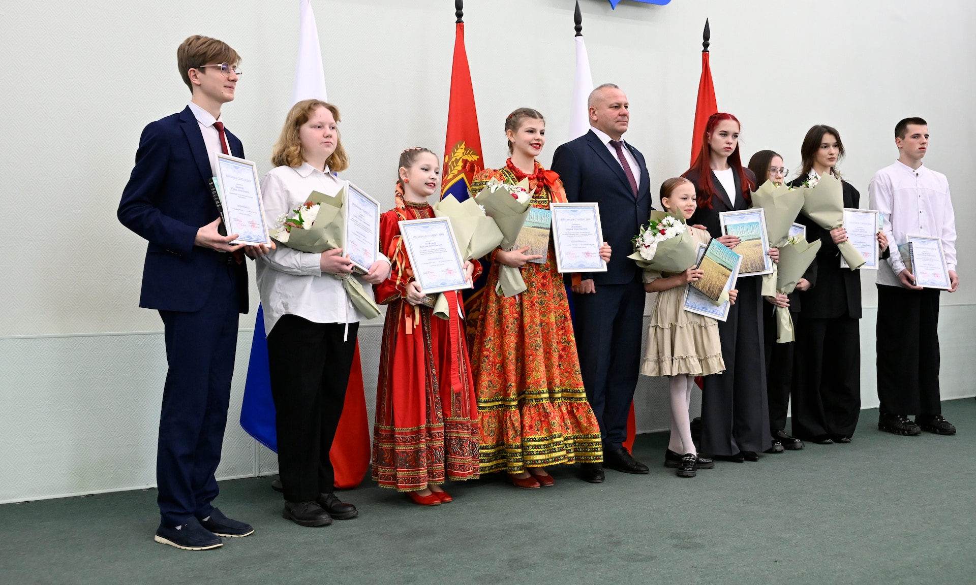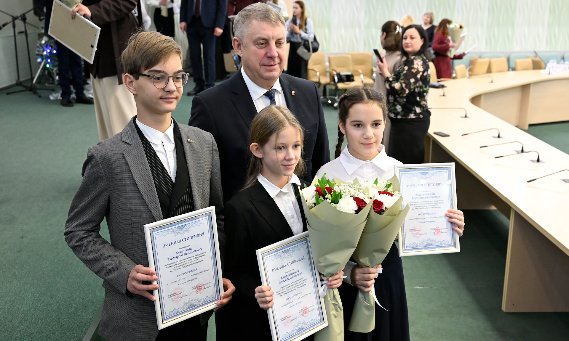 — От себя лично и от имени депутатов Брянской областной Думы рад приветствовать в этом зале одарённых ребят — именных стипендиатов — тех, кто прославляет наш край, служит настоящим примером.