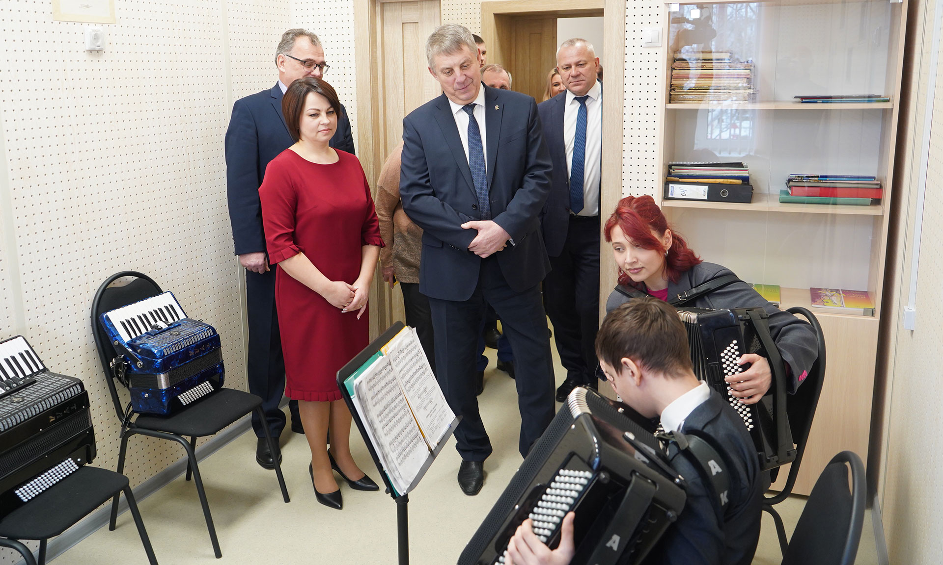 Губернатор Брянской области Александр Богомаз поприветствовал почетных гостей, учащихся и их родителей и поздравил с открытием нового корпуса школы искусств: