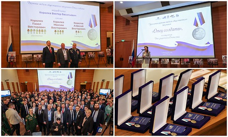В зале чествовали семьи из других регионов. Всего в феврале торжественные мероприятия пройдут в 32 регионах страны. Около 370 отцов будут удостоены медали «Отец солдата».