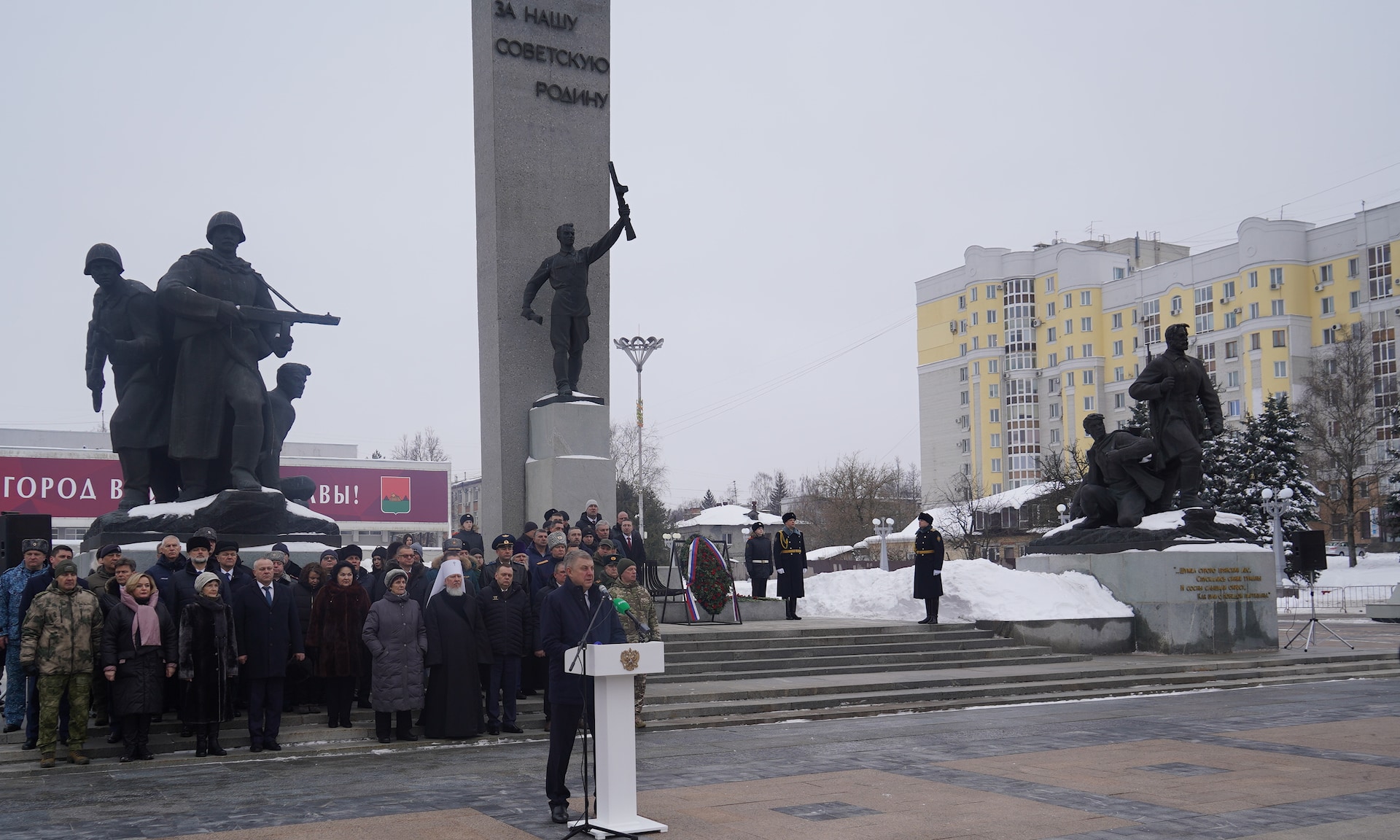 23 февраля в Брянске состоялось торжественная церемония возложения цветов к Вечному огню на площади Партизан.