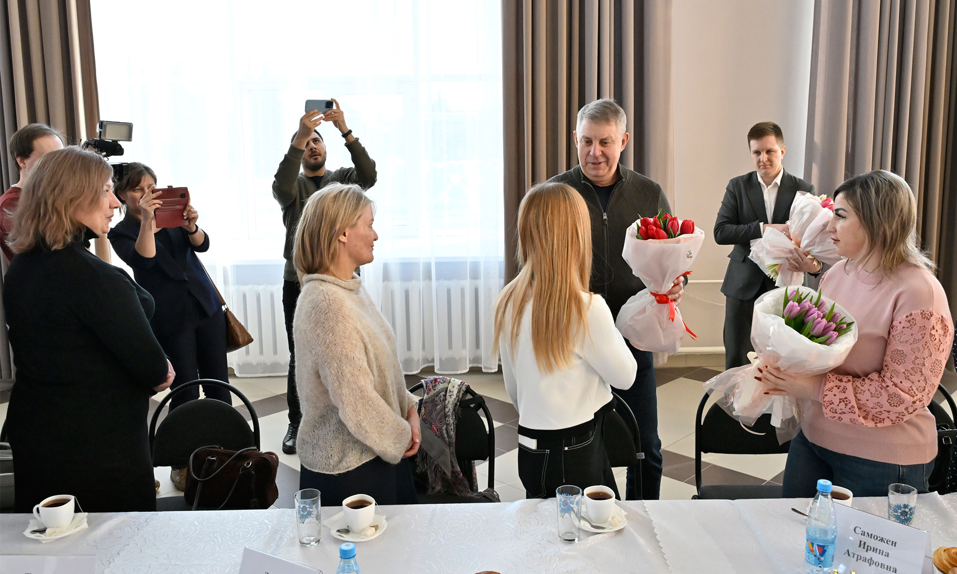 Губернатор Александр Богомаз, руководитель оперативной группы Министерства обороны по Брянской области генерал-майор Валерий Золотухин и председатель Брянской областной Думы Валентин Суббот поздравили мам и вдов погибших защитников Родины.