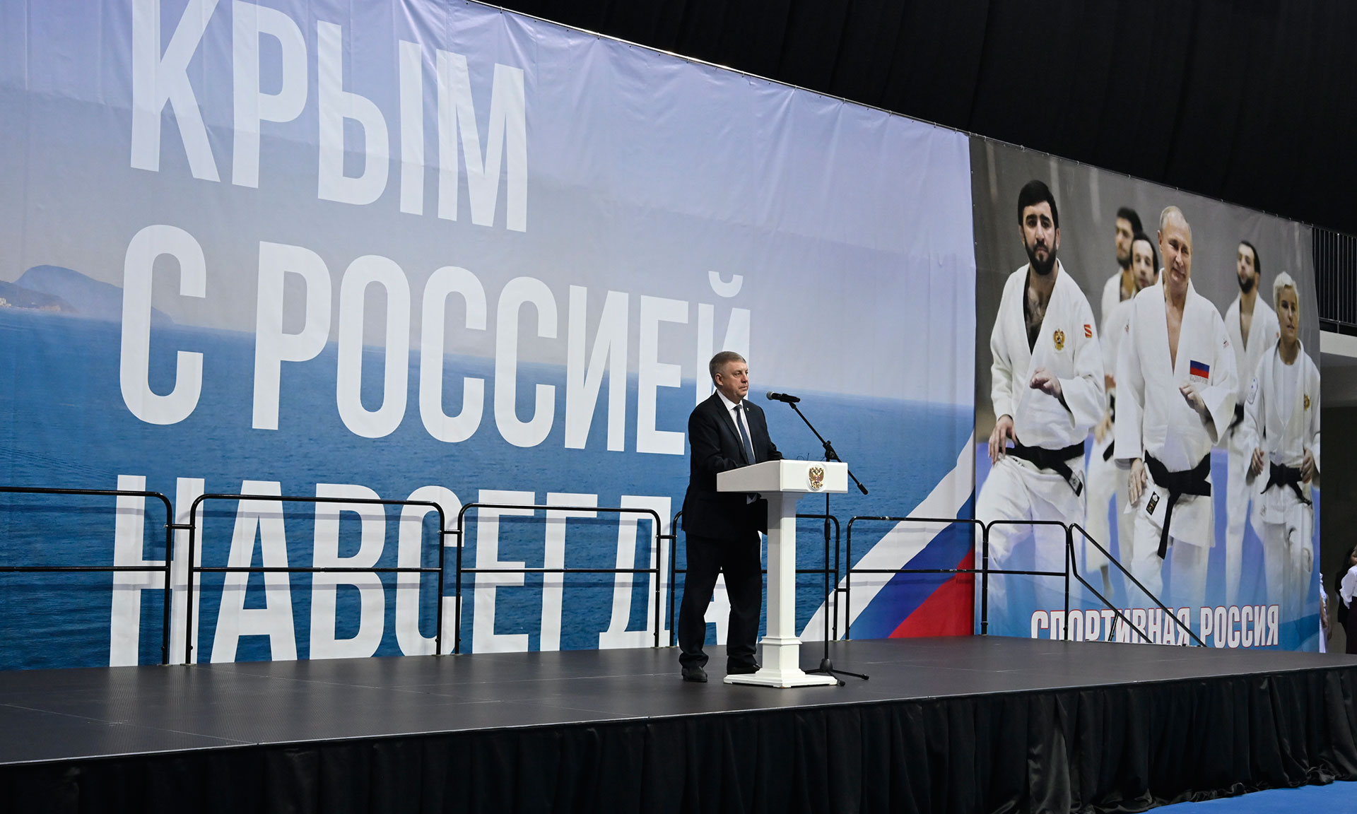 — Дорогие земляки! Сегодня мы с вами собрались в этом замечательном Дворце единоборств имени нашего прославленного земляка Артема Ивановича Осипенко, чтобы отметить 12 лет с того исторического момента, когда Крым и Севастополь вернулись в Россию.