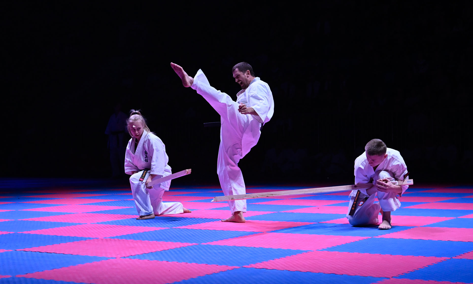 Боевые искусства, вобравшие в себя мудрость тысячелетий, — это могучая сила, которая укрепляет физическое здоровье человека, а также воспитывает мужество и честь, воспитывает настоящих патриотов своего Отечества. Окунуться в атмосферу мира боевых искусств зрителям помогли спортсмены федераций, объединившихся в Российский союз боевых искусств.
